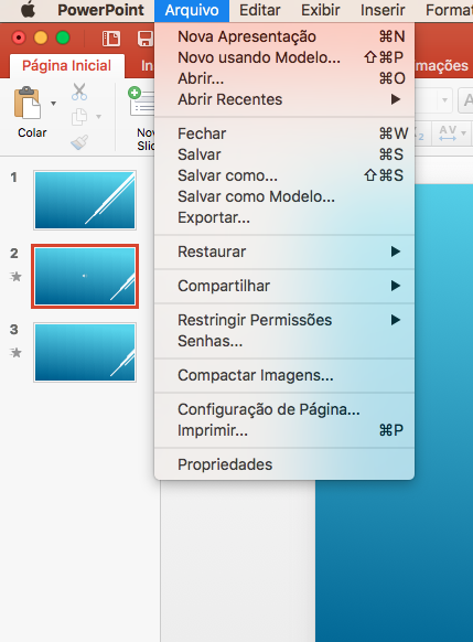 b) Ao pressionar as teclas SHIFT+F5 para iniciar o modo de apresentação, a apresentação inicia-se pelo slide 1.